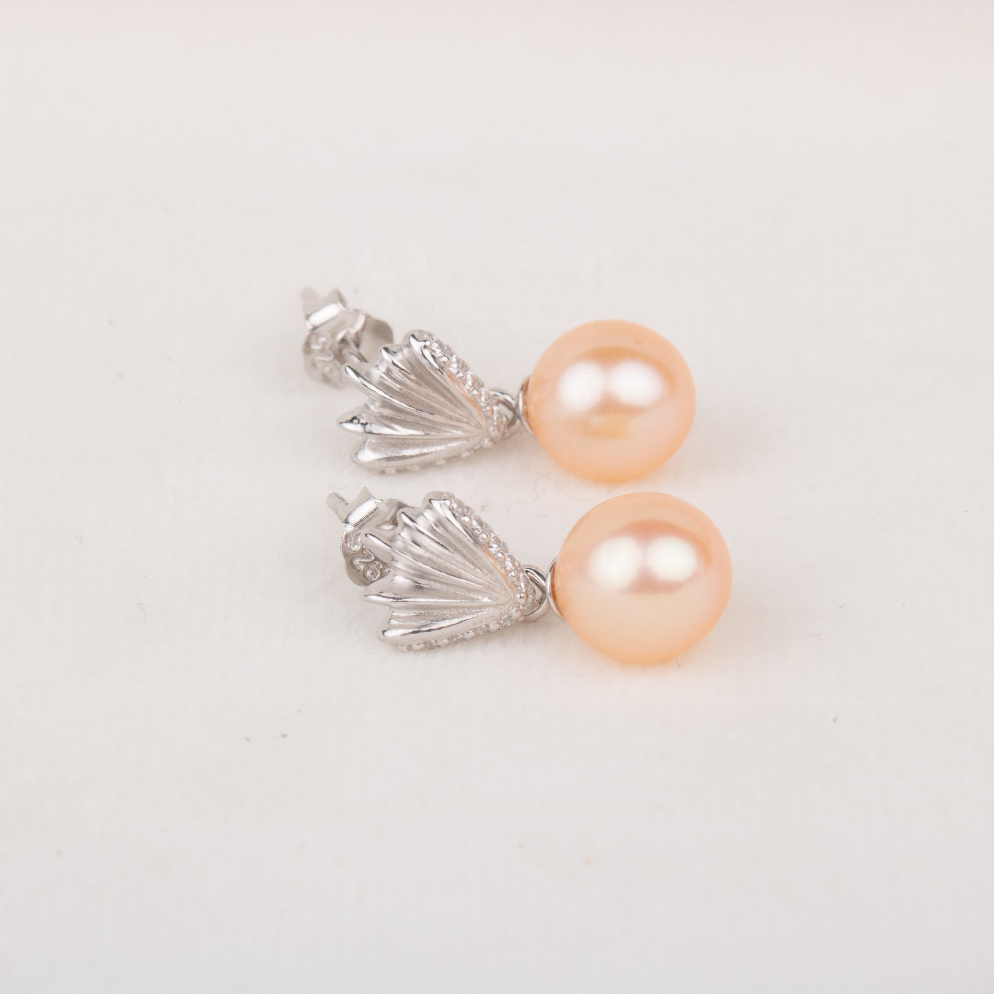 e010683 S925 pearl earring 925 sterling silver DIY 7-8mm Natural Freshwater pearl stud earring for women